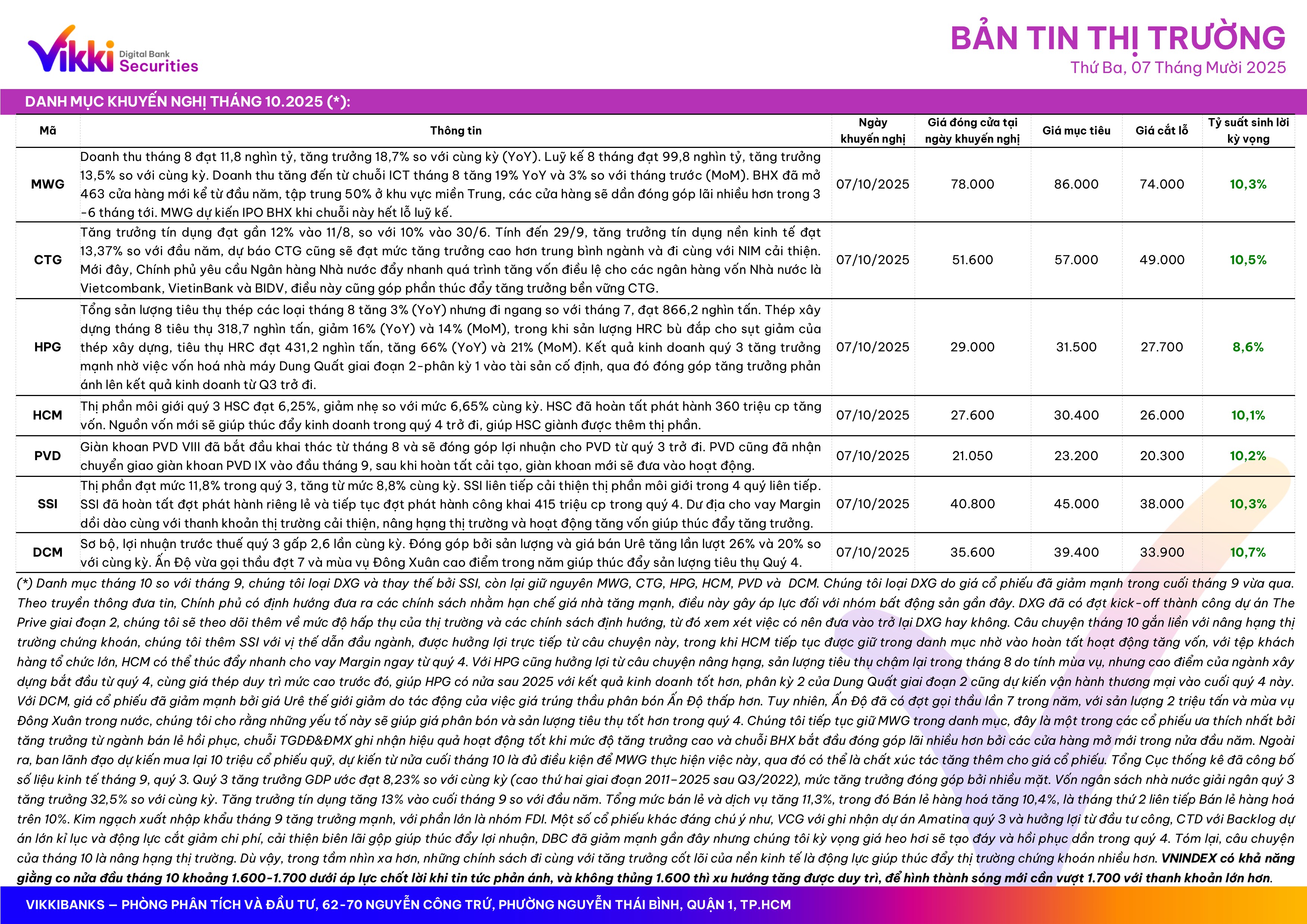 Trong ngắn hạn, những nhịp rung lắc mở ra cơ hội để nhà đầu tư chọn ra các mã cổ phiếu được dòng tiền chú ý, đồng thời có tiềm năng tăng trưởng trong giai đoạn quý IV/2025 ở các nhóm ngành như ngân hàng, chứng khoán, bất động sản, bán lẻ,…