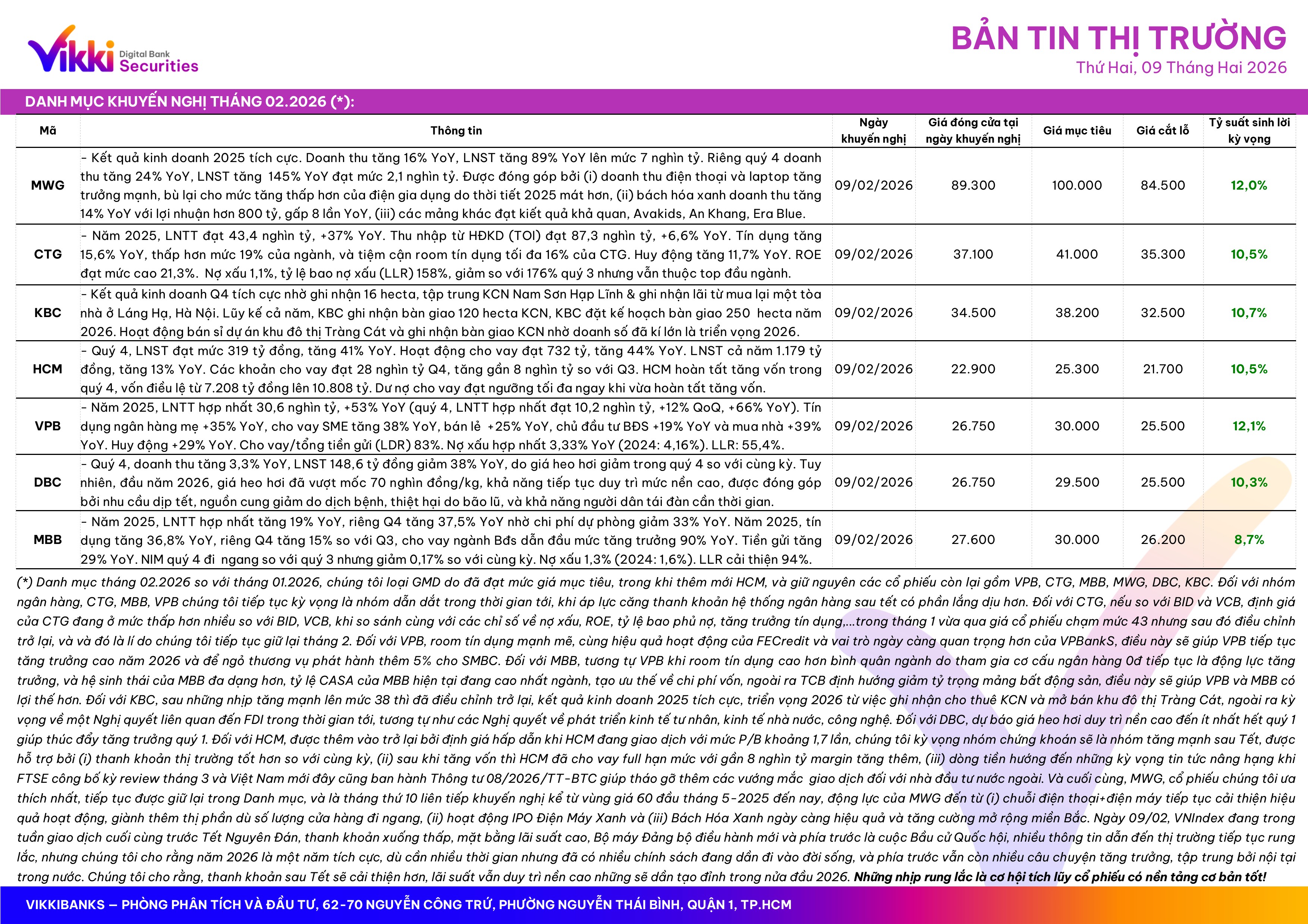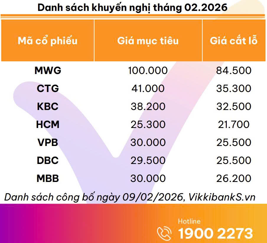 Diễn biến thị trường cho thấy dòng tiền đang dịch chuyển khỏi các cổ phiếu chưa đáp ứng kỳ vọng để tìm kiếm những cơ hội đầu tư mới có triển vọng hơn. Trong bối cảnh đó, nhà đầu tư nên tiếp tục theo dõi Danh mục khuyến nghị tháng 02/2026 nhằm cập nhật các cổ phiếu có nền tảng cơ bản tốt và chờ đợi tín hiệu dòng tiền tích cực.